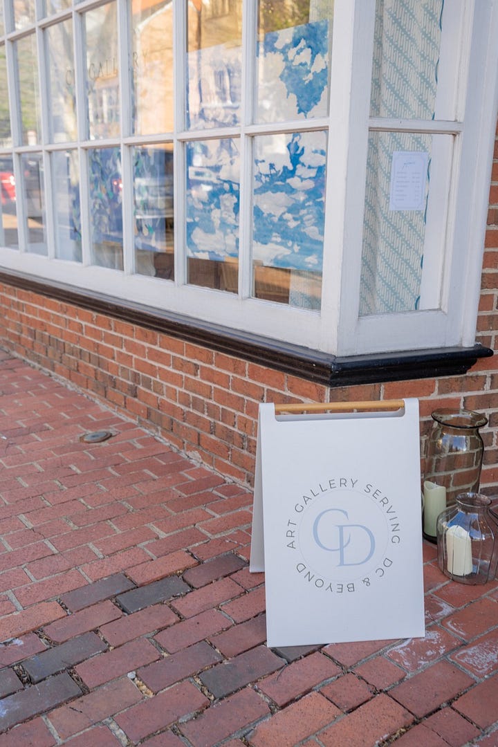 Last week a vertical sign at 10 East Federal in Middleburg, Virginia was hung - and I am finally giving myself permission to write the words “I’m opening a gallery.” It’s wild to see a lifelong dream play out, mostly because amidst all of the pinch me moments (big for me has been the vinyls on the window - that makes it seem so real!) there are also many moments that feel mundane already - buying a measuring tape before finding two others and submitting zoning paperwork. It’s hard to have a 30,000ft view!